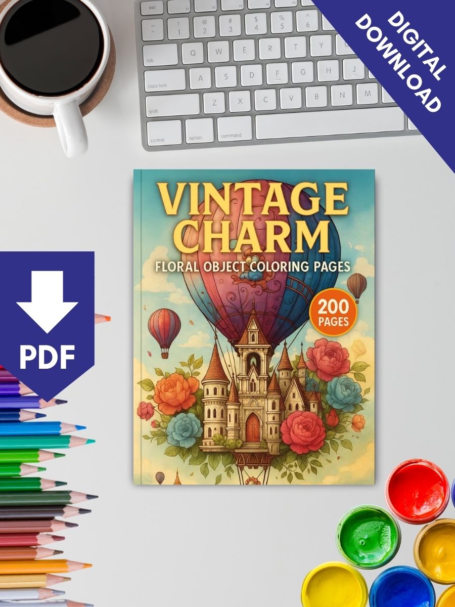 "Vintage Charm – 200 Floral Object Coloring Pages" - Product Details